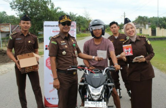 Sementara itu, saat membagikan stiker dan gantungan kunci kepada warga yang melintas di jalan raya, Kajari Aceh Singkil Muhammad Junaidi mengajak warga membudayakan Anti Korupsi dalam kesehariannya.